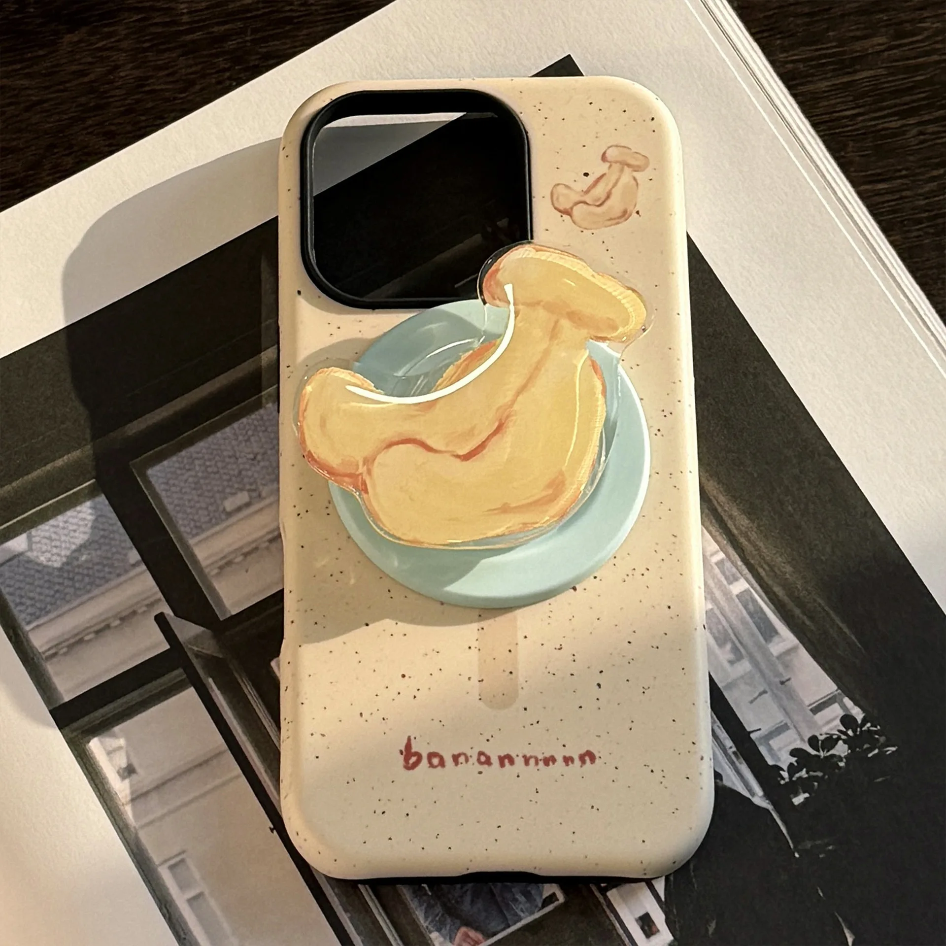 Korean splash-ink Cartoon Fruit Apple Banana Magnetic Bracket Phone Case For iPhone 17 Air 16 15 14 13 12 11 Pro Max Shockproof Cover