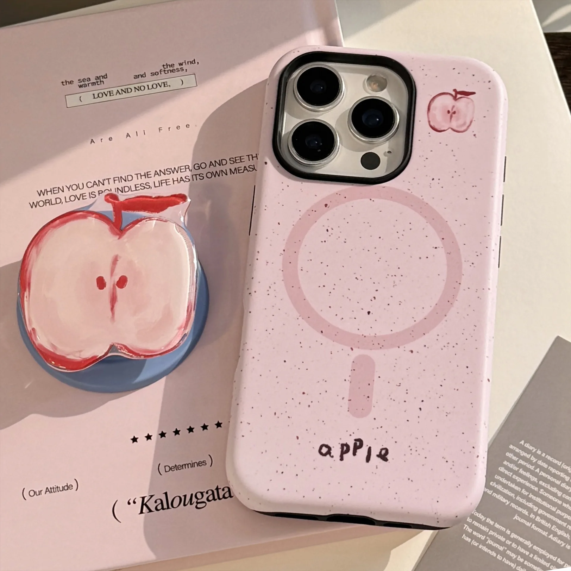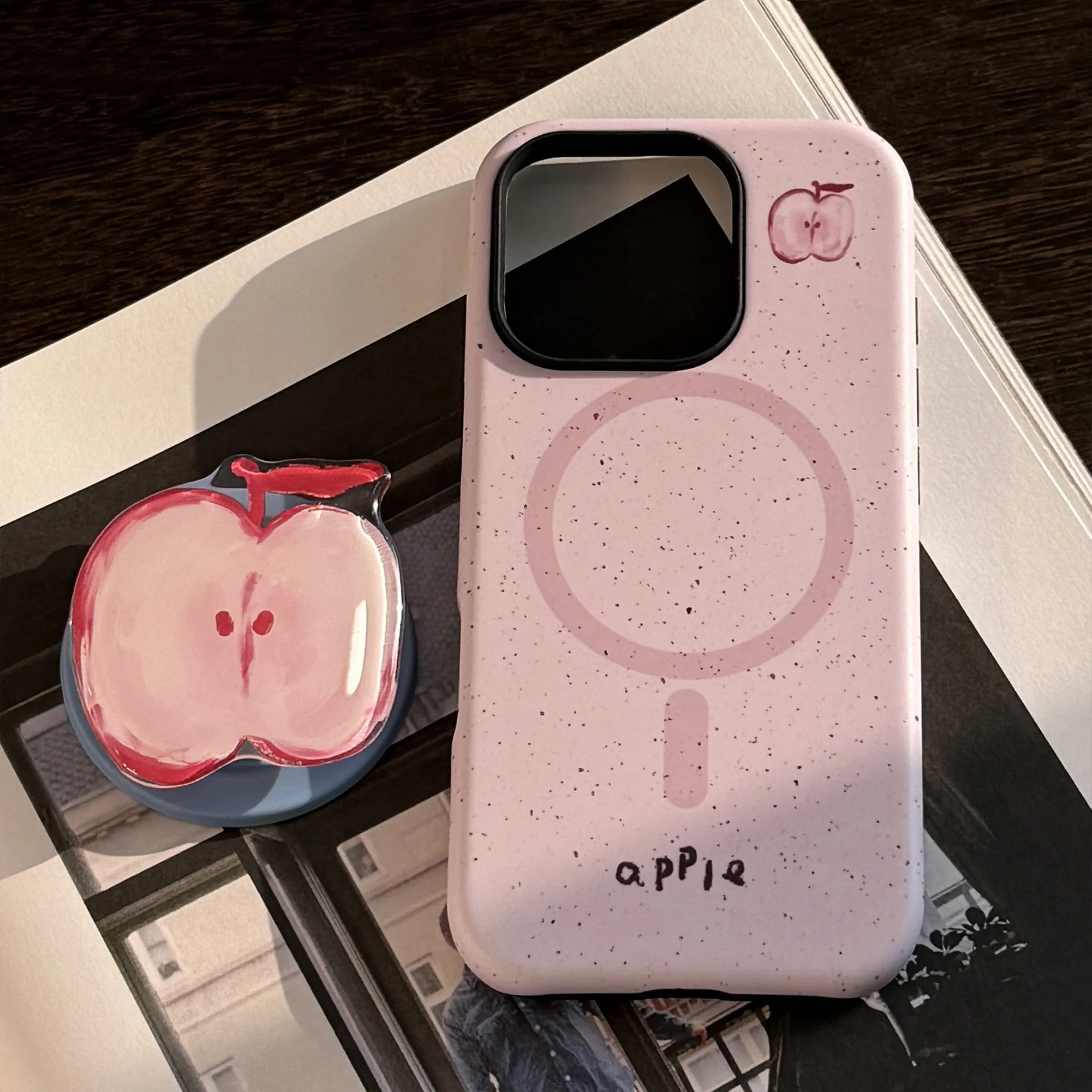 Korean splash-ink Cartoon Fruit Apple Banana Magnetic Holder Phone Case For iPhone 17 16 15 14 13 12 11 Pro Max Shockproof Cover